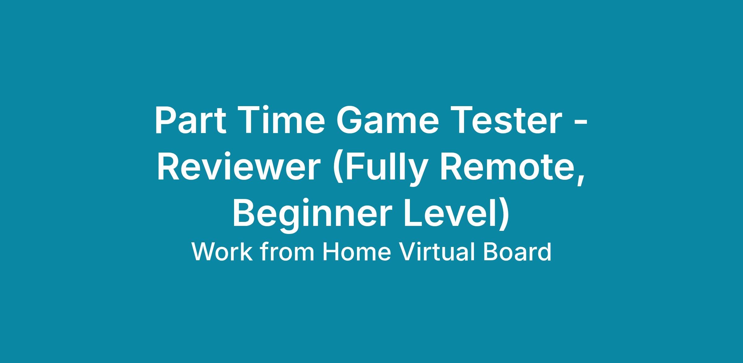 Work from Anywhere (US Preferred).We are in the process of significantly expanding our team of remote workers. If you're passionate about gaming and eager to start immediately, apply today to become a Part Time Game Tester - Reviewer!